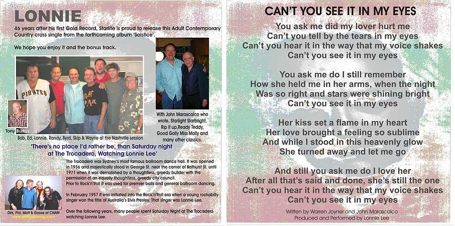 | Lonnie Lee | 'Can't you see it in my eyes'. | CD single with bonus track | ST820 |